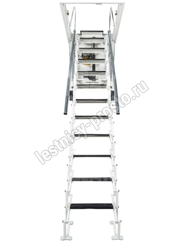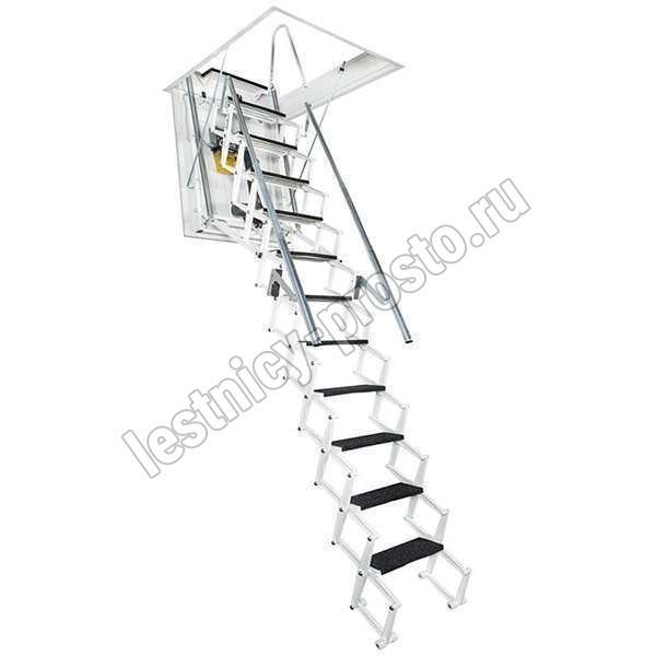Автоматическая раздвижная ножничная чердачная лестница, с электромотором для дистанционного открывания.