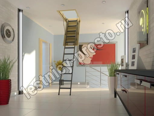 Установленные в лестнице угловые петли-шарниры нового образца придают ей высокую прочность и надежность, а также предохраняют короб от возможной деформации. Основное преимущество чердачной складной металлической лестницы LMS сводится к ее небольшим габаритам при сохранении высокой функциональности, прочности, надежности и эстетичности конструкции. Монтировать лестницу очень просто, для этого не придется затрачивать много времени и сил.