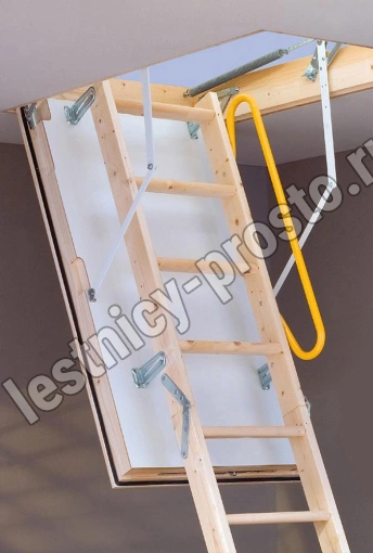 Складная деревянная лестница из 3-х секций с утепленным изолированным люком идеально подходит для крайне холодных чердачных помещений.