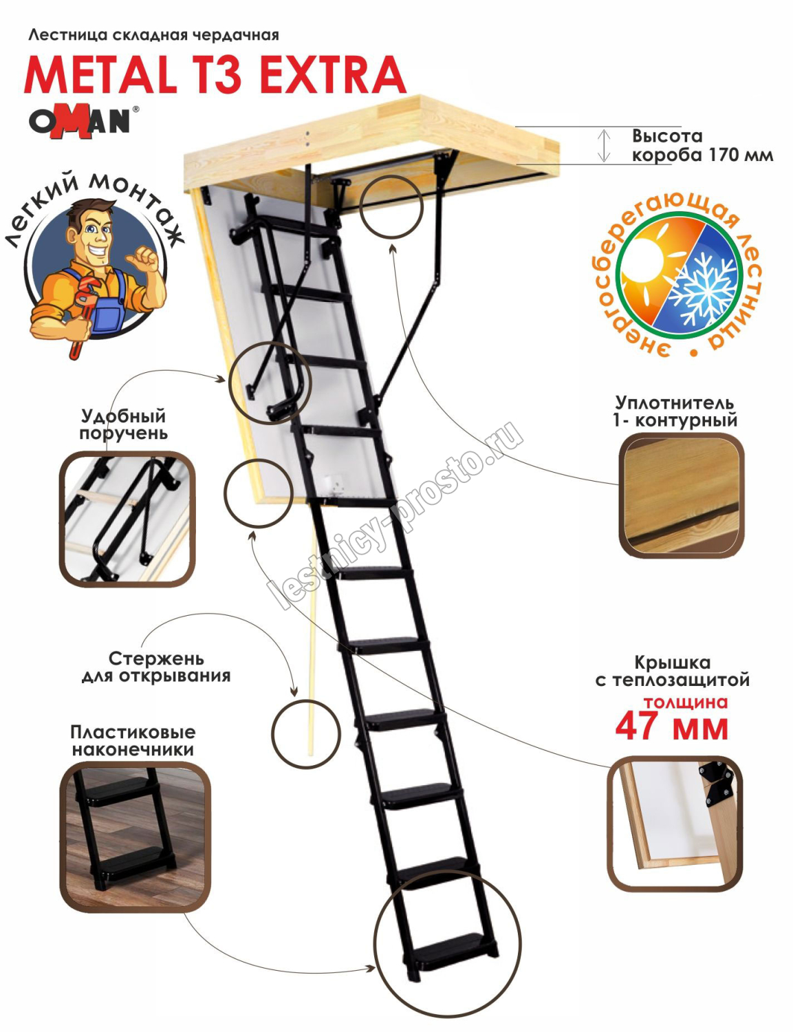 Лестница OMAN Metal T3 EXTRA 60×130 см, h-280 см