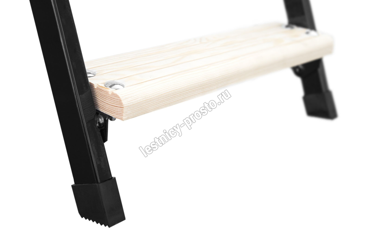 Ступени лестницы имеют антискользящие насечки и закреплены в столярное соединение «ласточкин хвост»