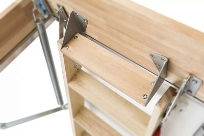 Противоскользящие выемки на ступенях обеспечивают безопасный подъём на чердак.