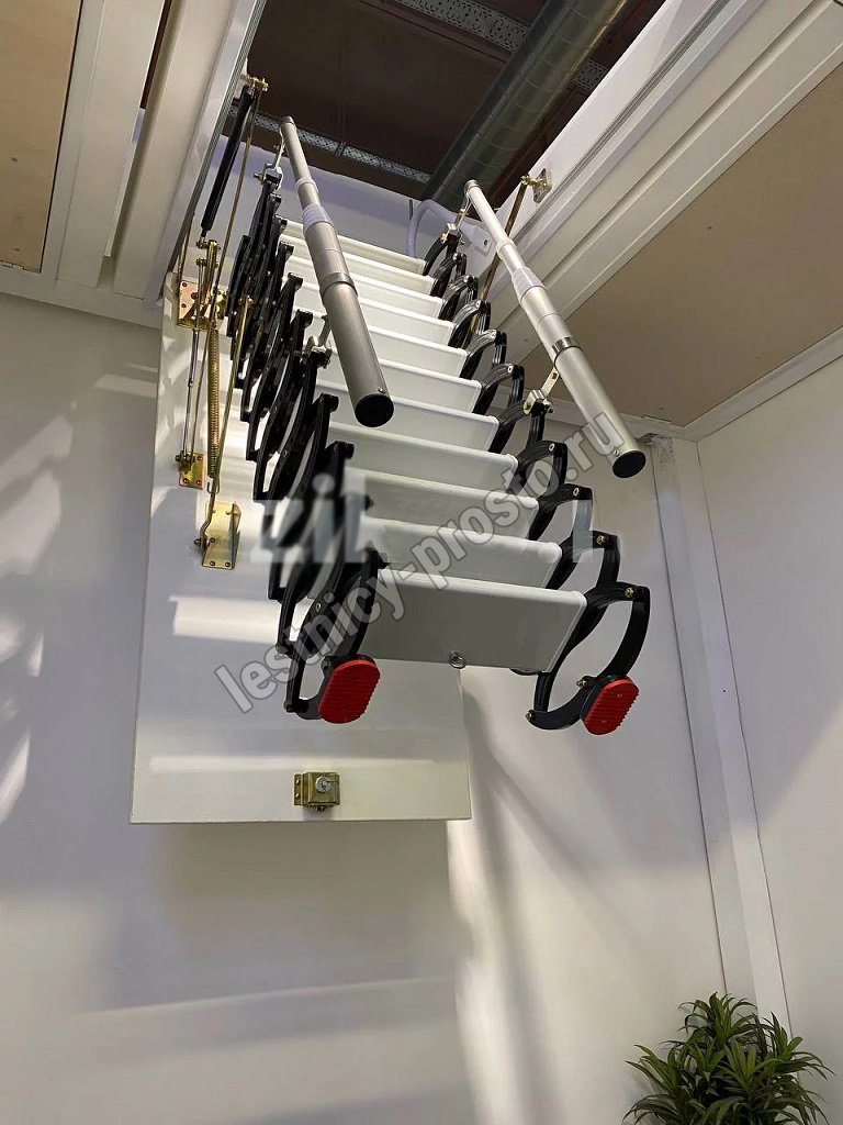 Ступени лестницы – из алюминия (белого цвета). Размер ступени 38х14 см