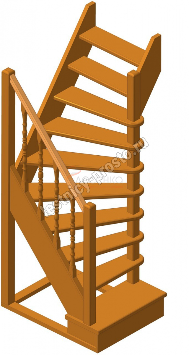 Деревянная межэтажная лестница ЛЕС-91 2250-2475 проем 1090-780, Бук