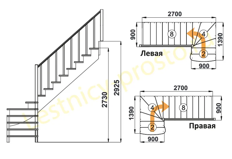 | Лестница из сосны К-001М/2 под покраску с подступёнками |