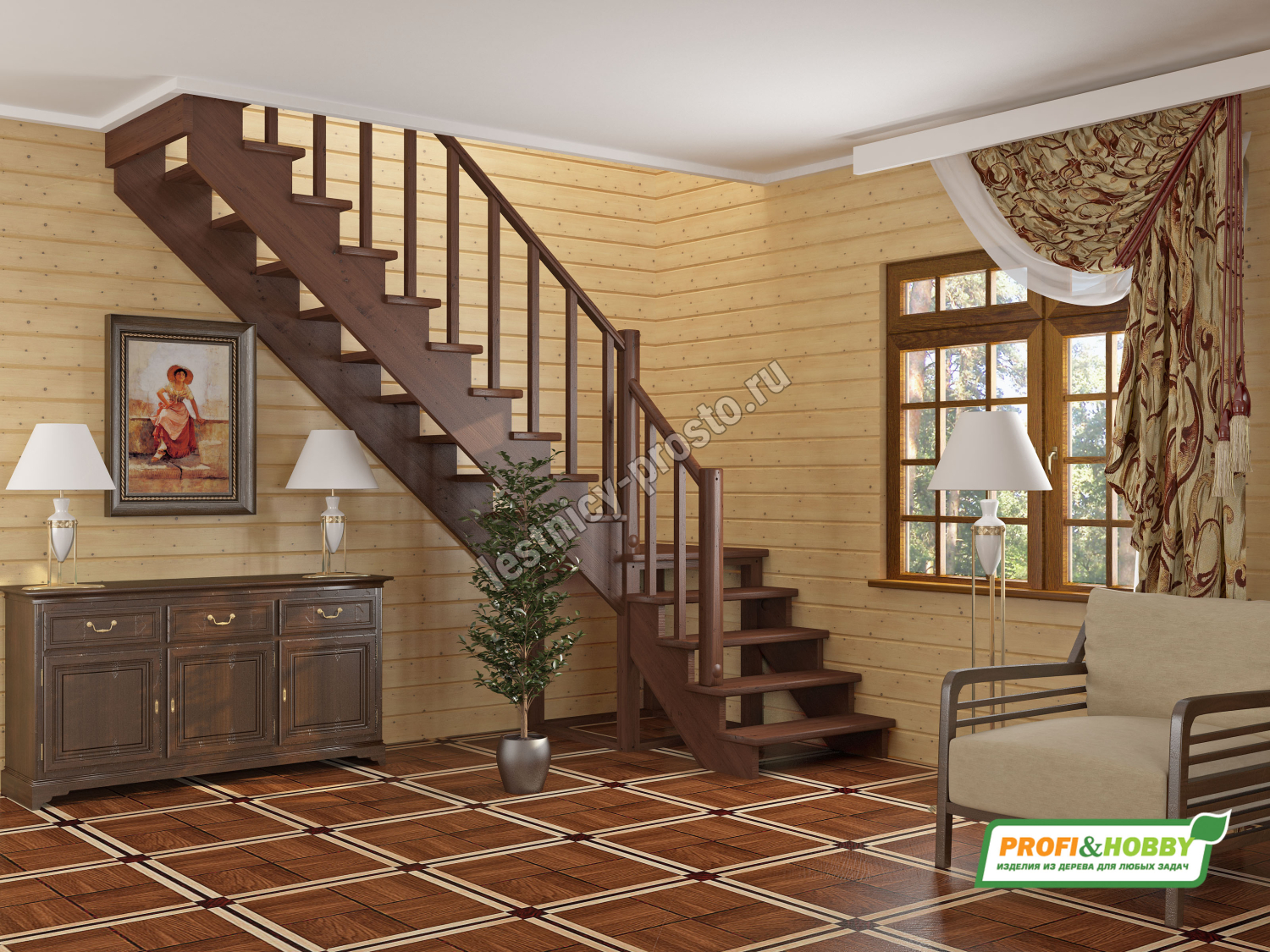 | Лестница из сосны К-002М/4 с подступёнками |