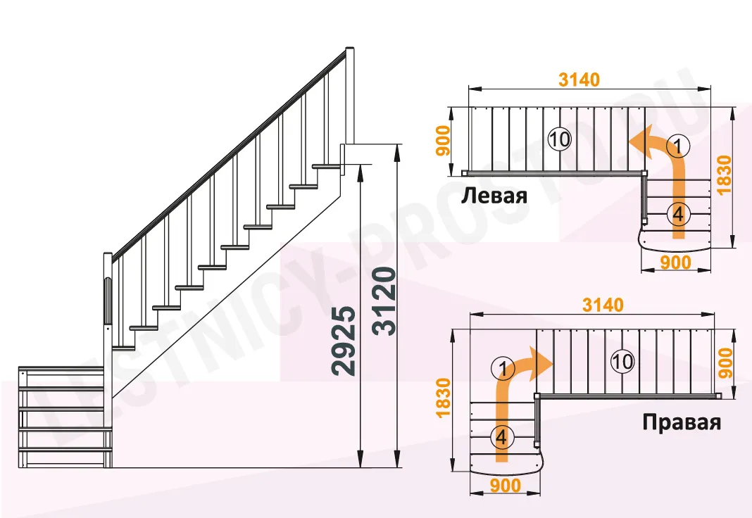 Высота лестницы 2925 - 3120
