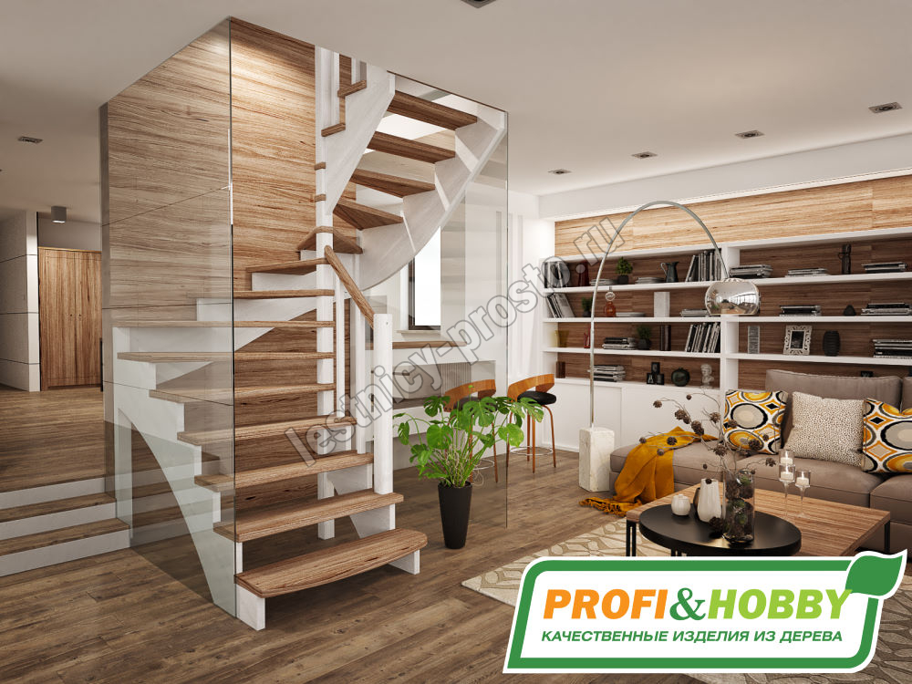 | Лестница из сосны К-103М с подступёнками |