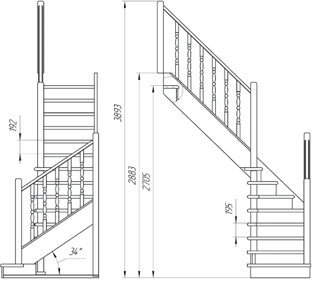 Базовый комплект включает в себя деревянные элементы лестницы, подступенки и ограждения без какого-либо покрытия. Лестница поставляется в разобранном виде, упакованная в ящик. Монтаж производится силами двух человек, в соответствии с указаниями, приведёнными в паспорте лестницы.