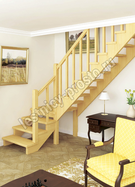 | Деревянная межэтажная лестница ЛЕС-08, Сосна |