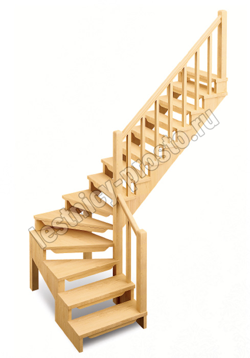 Лестница изготовлена из древесины хвойных пород. Базовый комплект включает в себя деревянные элементы лестницы и ограждения без какого-либо покрытия. Поставляется в разобранном виде, упакованная в ящик. Монтаж производится силами двух человек, в соответствии с указаниями, приведёнными в паспорте лестницы.
