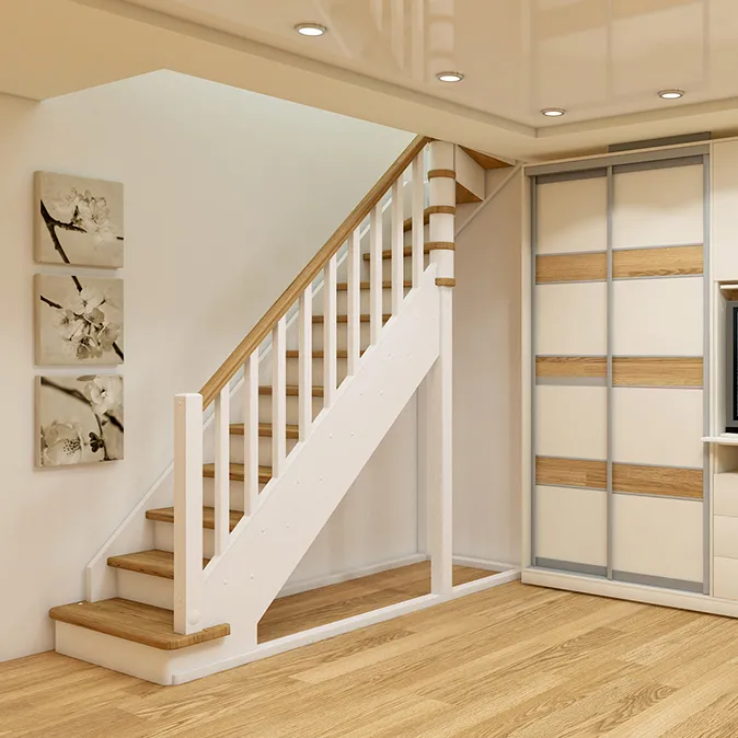 Комфортная малогабаритная лестница с подступёнками. Незаменима в помещениях, где необходимо сэкономить пространство.