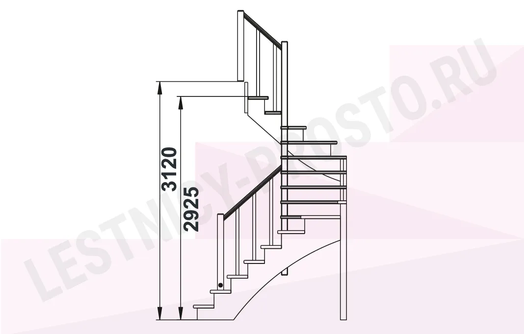 Высота лестницы 2925 - 3120 мм