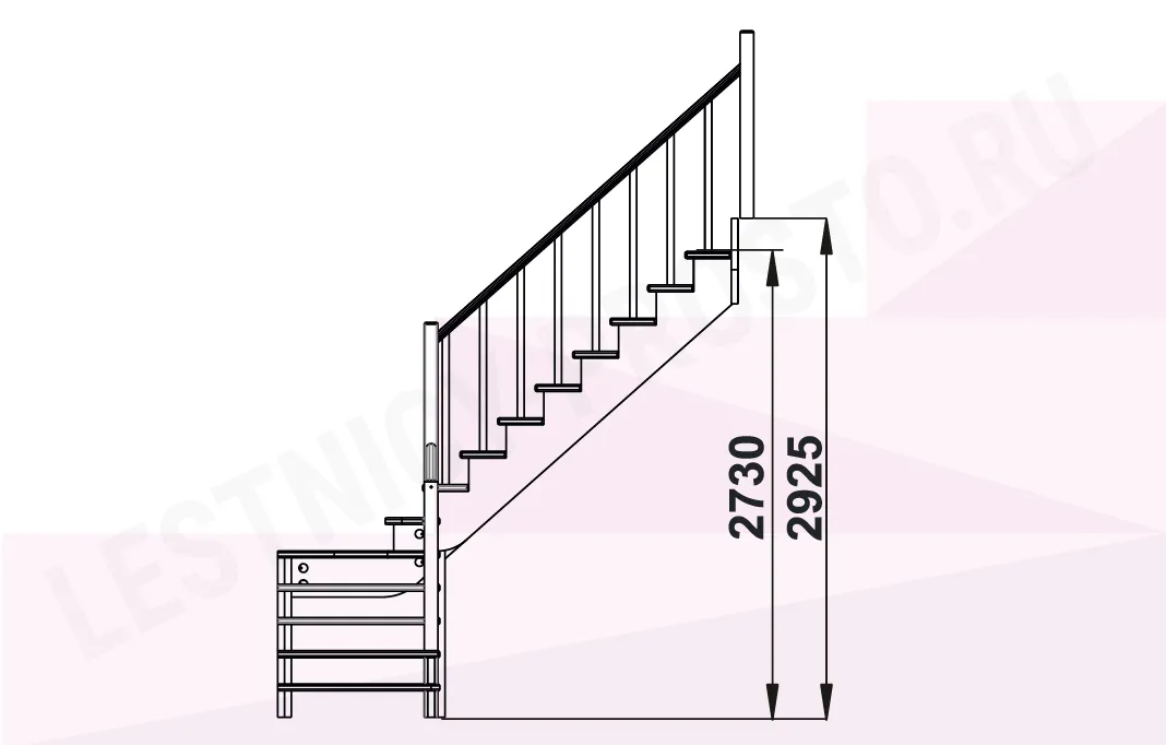 Ступени и поручень лестинцы изготовлены из бука, остальные элементы из сосны. Возможно изготовление данной модели полностью из бука. Базовый комплект включает в себя деревянные элементы лестницы и ограждения без какого-либо покрытия.