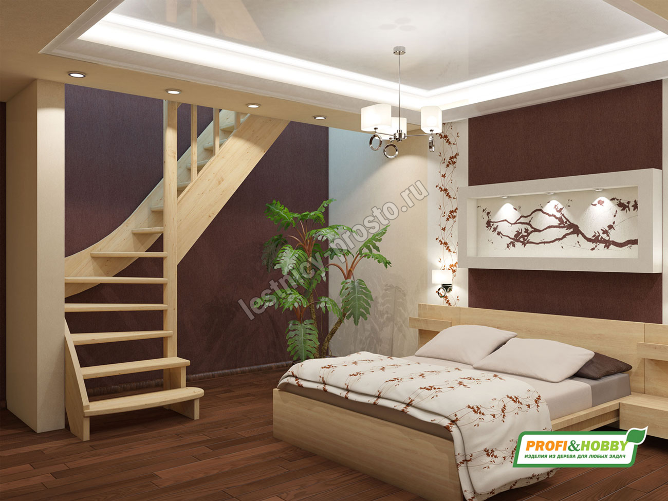 Ступени и поручень лестницы изготовлены из бука, остальные элементы из сосны.
