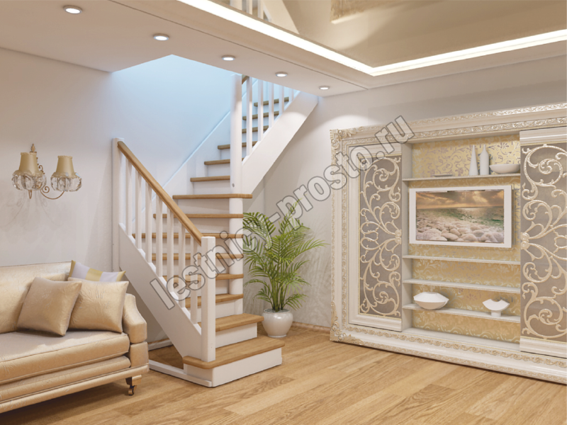 Ступени и поручень лестницы изготовлены из бука, остальные элементы из сосны.