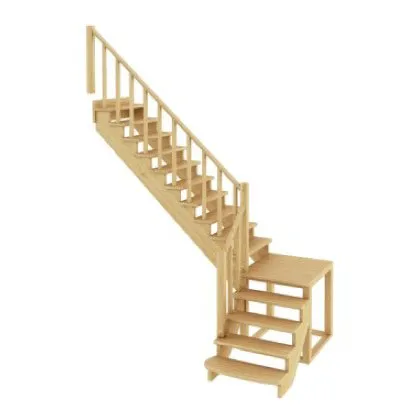 Ступени и поручень лестницы изготовлены из дуба, остальные элементы из сосны.