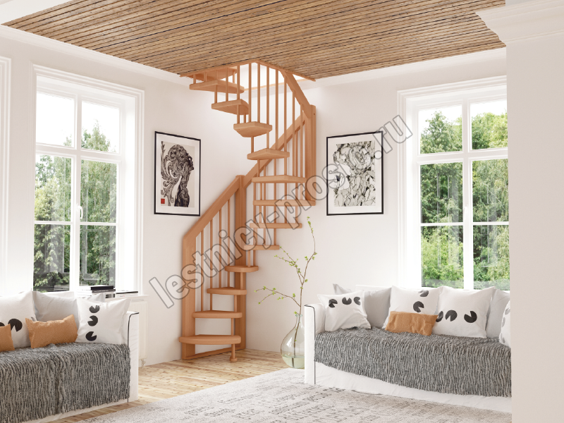 Базовый комплект включает в себя деревянные элементы лестницы и ограждения без какого-либо покрытия. Лестница сверхмалогабаритная
