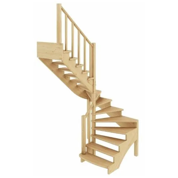 Базовый комплект включает в себя деревянные элементы лестницы и ограждения без какого-либо покрытия.