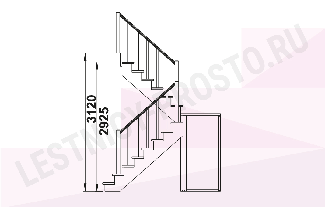 Базовый комплект включает в себя деревянные элементы лестницы с подступёнками и ограждения без какого-либо покрытия. Стандартное ограждение можно заменить любым на ваш вкус (стоимость может измениться).