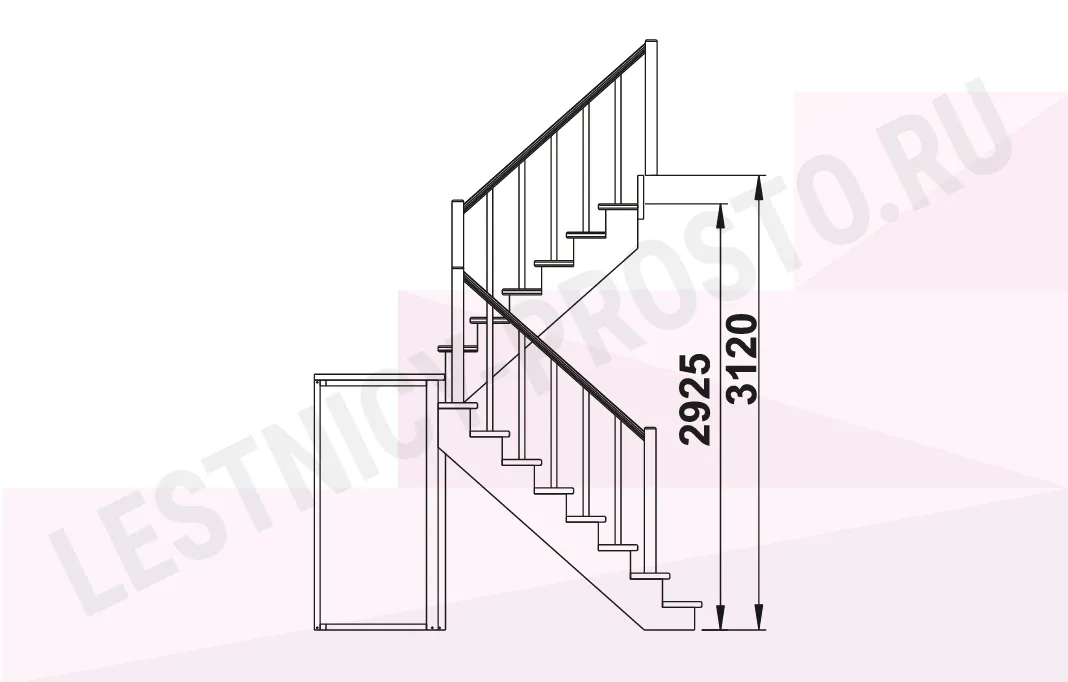 Схема лестницы К-004М/2 с поворотом налево