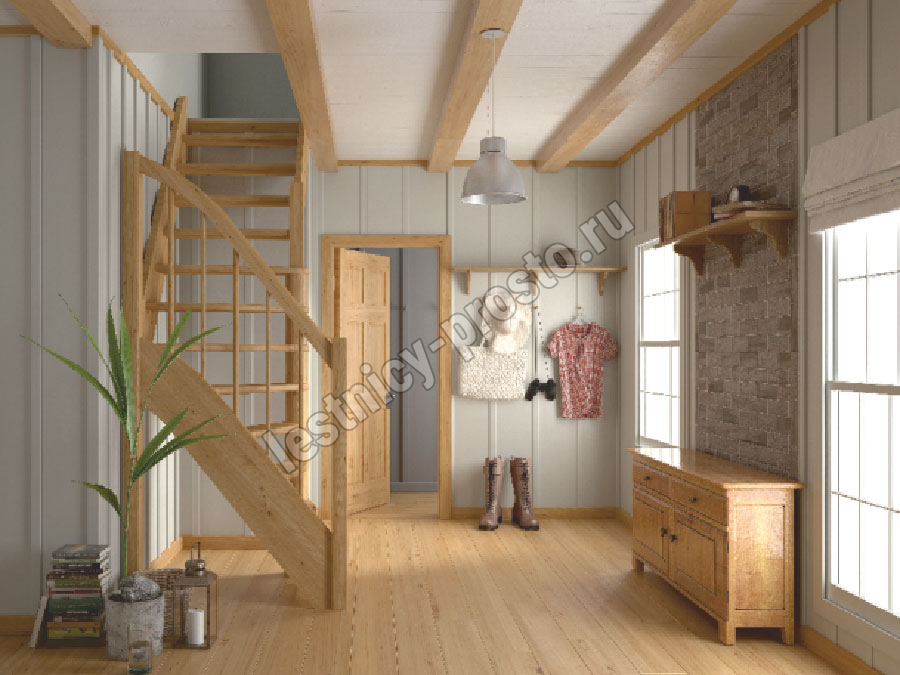 Базовый комплект включает в себя деревянные элементы лестницы и ограждения без какого-либо покрытия.