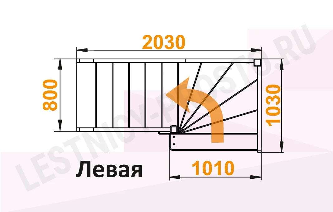 Схема лестницы ЛС-92М/4 с поворотом налево