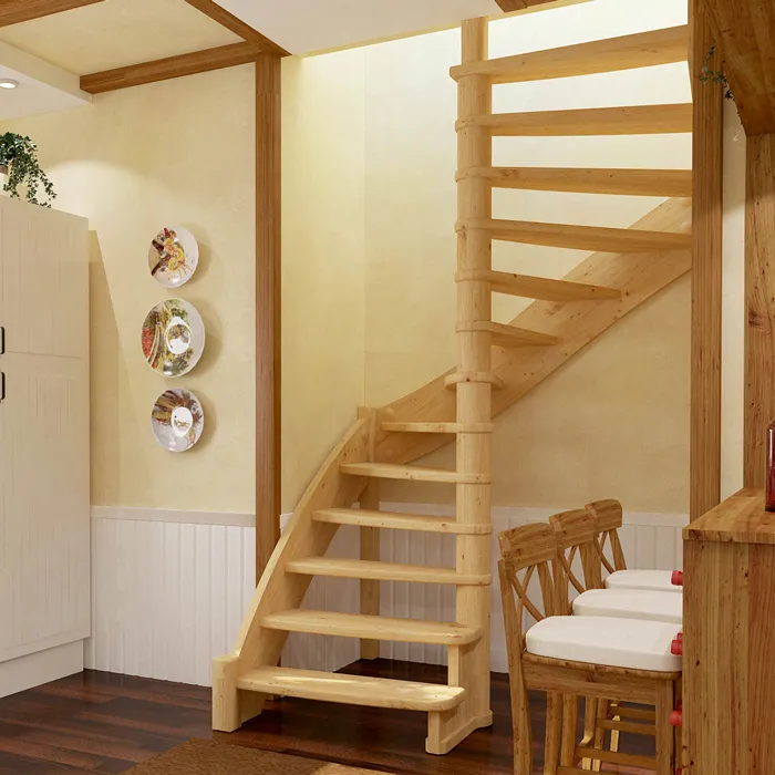 Ступени и поручень лестницы изготовлены из ясеня, остальные элементы из сосны.