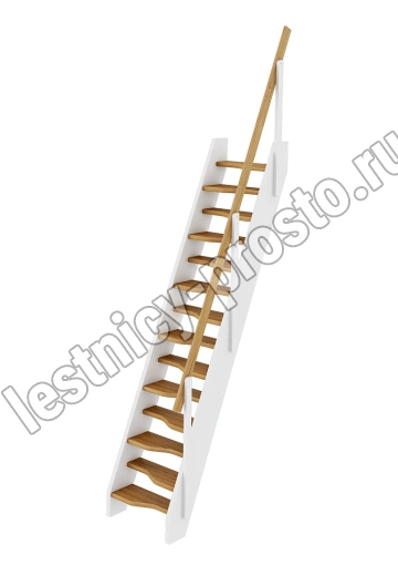 Ступени и поручень лестницы изготовлены из ясеня, остальные элементы из сосны.