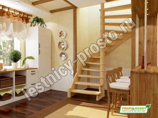 Базовый комплект включает в себя деревянные элементы лестницы без какого-либо покрытия.