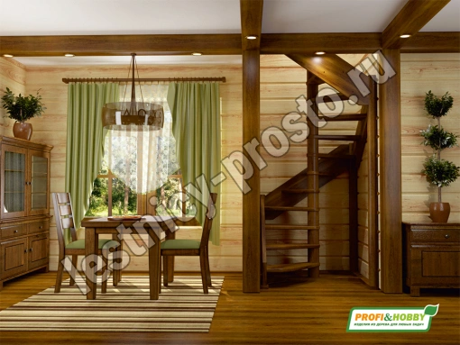 Ступени и поручень лестницы изготовлены из ясеня, остальные элементы из сосны.