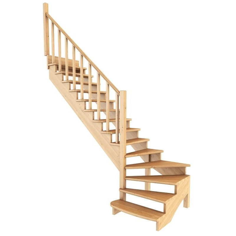 Базовый комплект включает в себя деревянные элементы лестницы и ограждения без какого-либо покрытия.