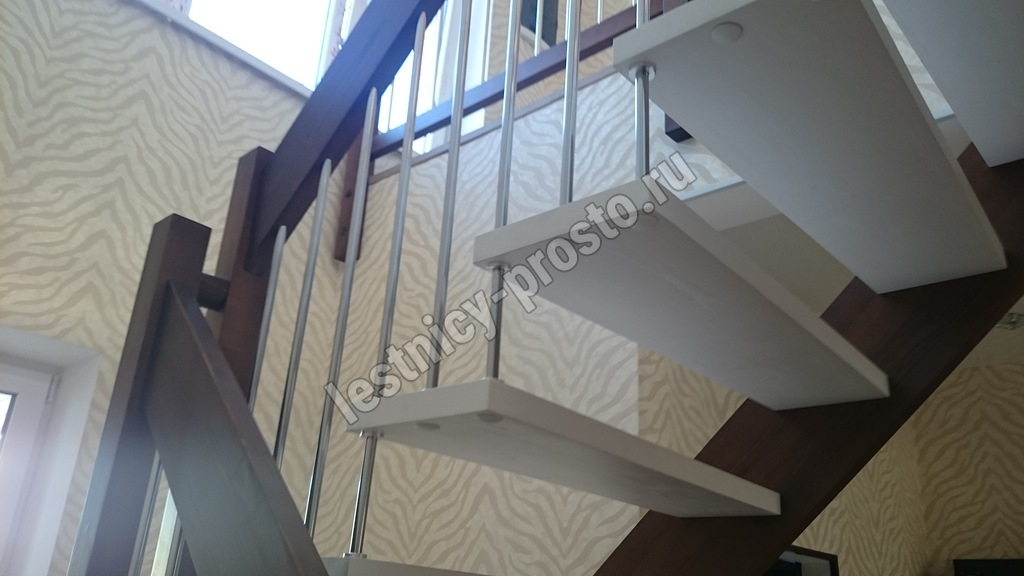 Надёжная современная лестница выполнена по немецкой технологии. Стоимость указана для лестницы с ограждением (с одной стороны); Поставляется в разобранном виде, в комплекте необходимый крепёж; Лестницу можно собрать самостоятельно; Так же, вы можете заказать услугу монтажа нашими специалистами; 4 вида породы дерева для изготовления лестницы: сосна, бук, ясень, дуб; возможна комбинированная лестница: из сосны (ступени бук, ясень, дуб); Деревянные элементы без какого-либо покрытия, отшлифованы, готовы к покраске. За дополнительную плату, вы можете изменить любые параметры, а именно: увеличить глубину ступени; увеличить ширину марша до 900 мм. и выше; заказать подступенки к лестнице; заказать отделку перекрытия (между 1-м и 2-м этажами); изготовить дополнительный промежуточный марш; заказать ограждение 2-го этажа; покраска в любой цвет или несколько цветов или покрытие защитными средствами; дополнение балясины из нержавеющей стали деревянными элементами; покраска балясин из нержавеющей стали порошковой краской в цвет RAL.