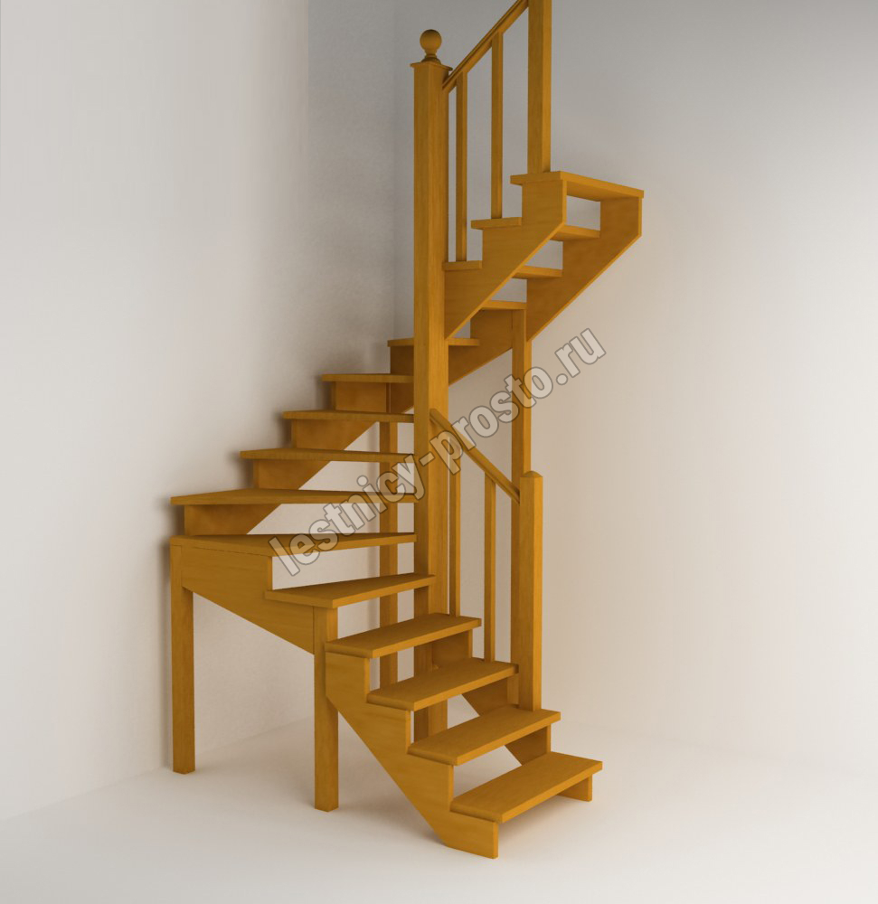 Лестница изготавливается под заказ. Возможны варианты подходящие под необходимые размеры проёма и высоту помещения. Базовое ограждение можно заменить на кованое или точеное. Лестницу можно дополнить подступенями, бортиками, миниподступенями. Первую ступень можно заменить на пригласительную - лекальную. Классическая модель поворотной лестницы раскрывает всю природную красоту натуральных материалов. У лестницы комфортная высота шага, удобный широкий марш и угол подъема. Указана стоимость лестницы без какого-либо покрытия.