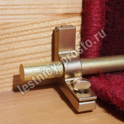 Ковродержатель комплектуется двумя держателями из латуни цвета золото, а также цельным прутком из латуни длиной от 251 до 300 см. Конструкция является сборно-разборной не требующей демонтажа креплений, что делает ее долговечной и очень удобной для чистки ковров и ковровых покрытий.