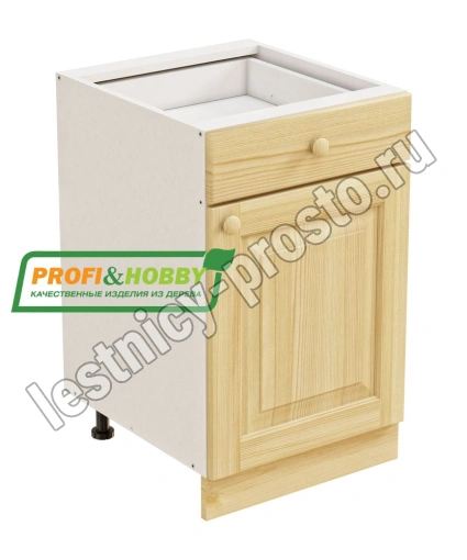 Тумба 1 дверь 1 ящик 500х530х720 + фасад сосна бесцветный акриловый лак