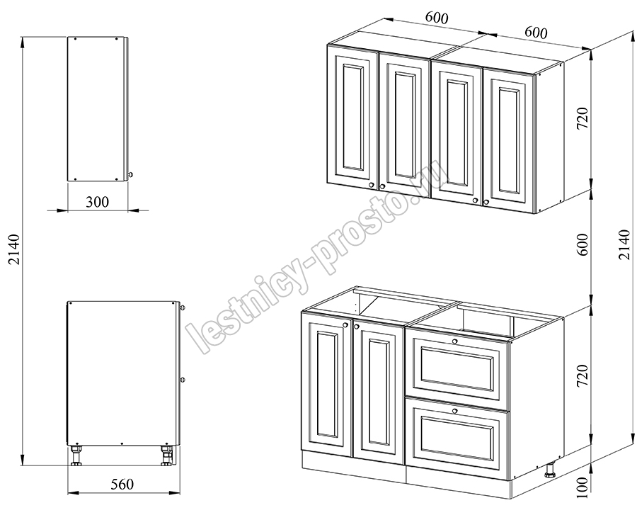 4. Тумба под мойку 600 х 560 х 720 мм - 1 шт