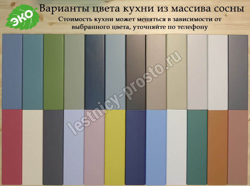Компактный кухонный гарнитур из 100% массива сосны шириной 1,2 и высотой 2,14 метра (верхние шкафы высотой 72 см). Подойдёт для небольшой кухни, квартиры-студии или загородного дома. Цвет на выбор - 27 вариантов (при заказе кухни в нашем интернет магазине просьба указывать название цвета в комментариях).