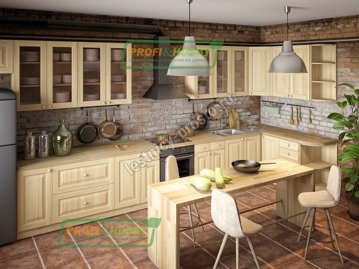 Шкаф над вытяжкой изготовлен из 100% массива дерева, без шпона и без МДФ/ДСП.