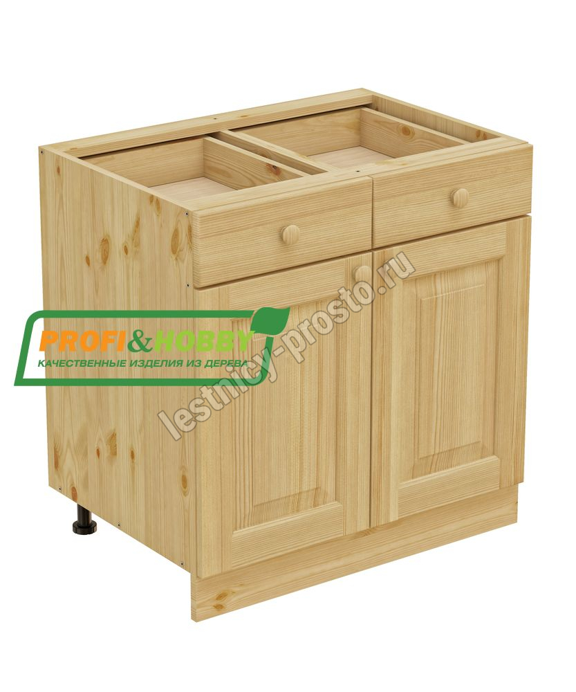 Тумба 2 двери, 2 ящика 800 х 560 х 720 сосна, бесцветный акриловый лак