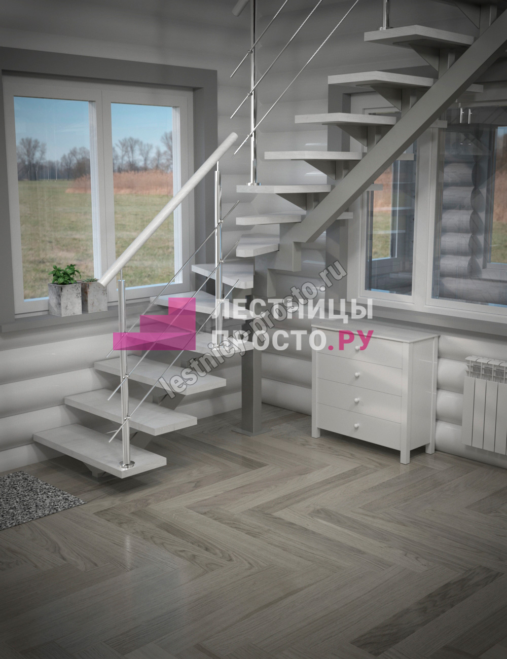 Каркас лестницы PROSTO MONO STEP TRINITY г-образная забежная с ограждением