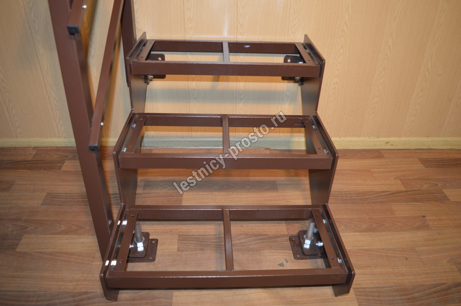 Покрытие порошковое, очень прочное и долговечное. Все детали каркаса крепятся с помощью болтов, благодаря чему Вы можете собрать каркас самостоятельно без применения сварки. В зависимости от ширины лестницы, каркас состоит из двух (ширина до 1 метра) или трех (ширина до 2 метров) опорных балок (тетив).