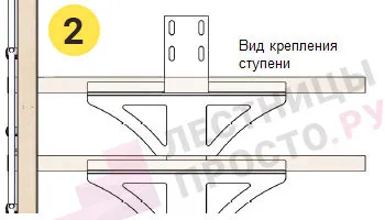При заказе вы можете выбрать любой вид крепления ступеней из показанных ниже в блоке "Чертежи и схемы" (просто оформите заказ, мы позвоним вам для согласования заказа и спросим номер необходимого крепления) .