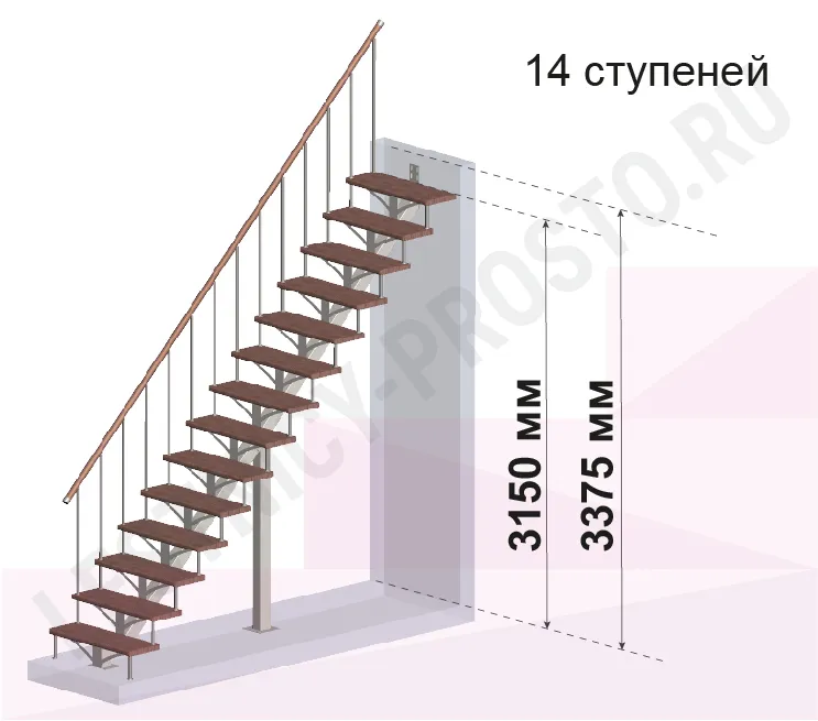 Лестница PROSTO MONO прямая, h337.5 см, ступени лиственница