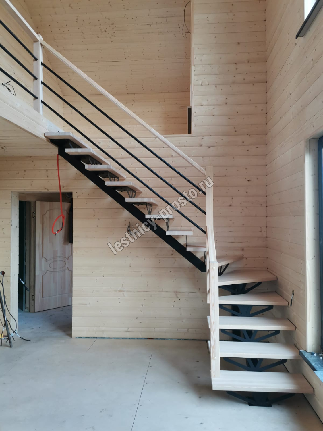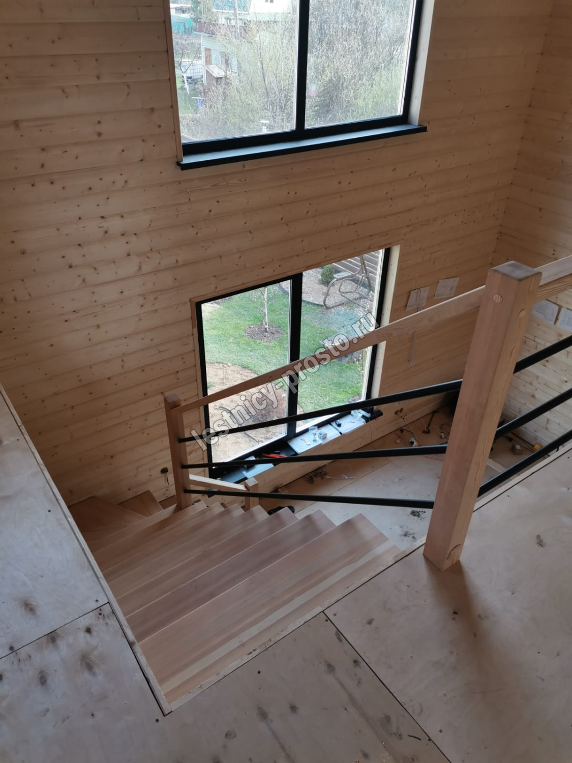 Лестница PROSTO MONO STEP TRINITY г-образная забежная, ступени берёза с ограждением