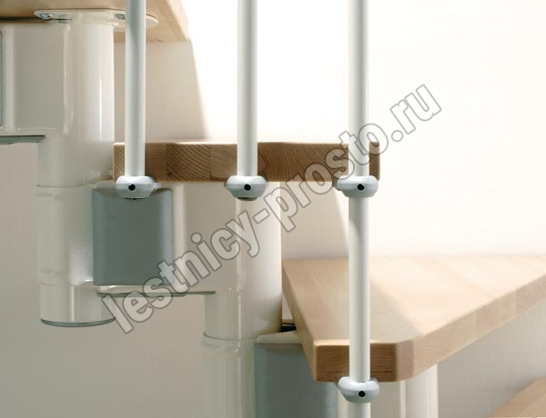 При монтаже этой лестницы, возможно регулировать высоту и глубину шага, таким образом можно получить лестницу под высоты этажа в диапазоне 2250 - 3030 мм, кроме того, установив дополнительный комплект увеличения высоты, можно поднять высоту лестницы до 3730 мм. Ширина проступи регулируется при монтаже в пределах 180 - 220 мм. Каркас и стойки ограждения выполнены из пластифицированного металла. Уникальный модульный каркас позволяет собрать лестницу необходимой формы.