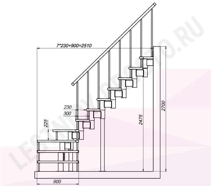 Высота лестницы 2475 - 2700 (11 ступеней) мм
