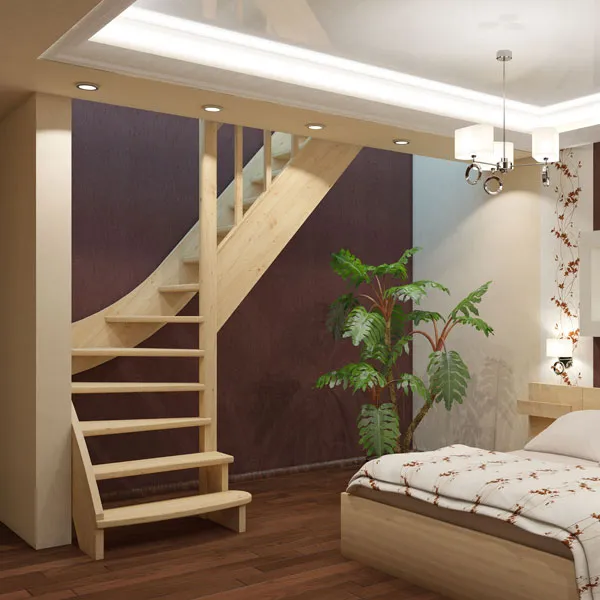Верхняя ступень лестницы устанавливается ниже уровня второго этажа (добавляется еще один подъем)