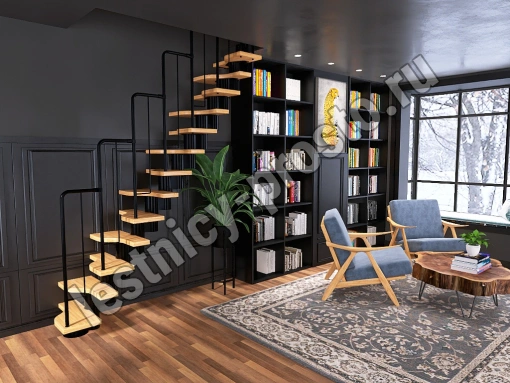 Лестница Prosto Urban Black гусиный шаг 700 мм, h234-336 см (13 ступеней), бук