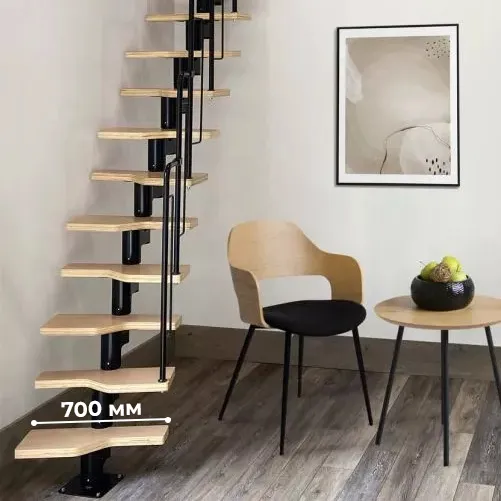 Лестница Prosto Urban Black гусиный шаг 700 мм, h234-336 см (13 ступеней), дуб